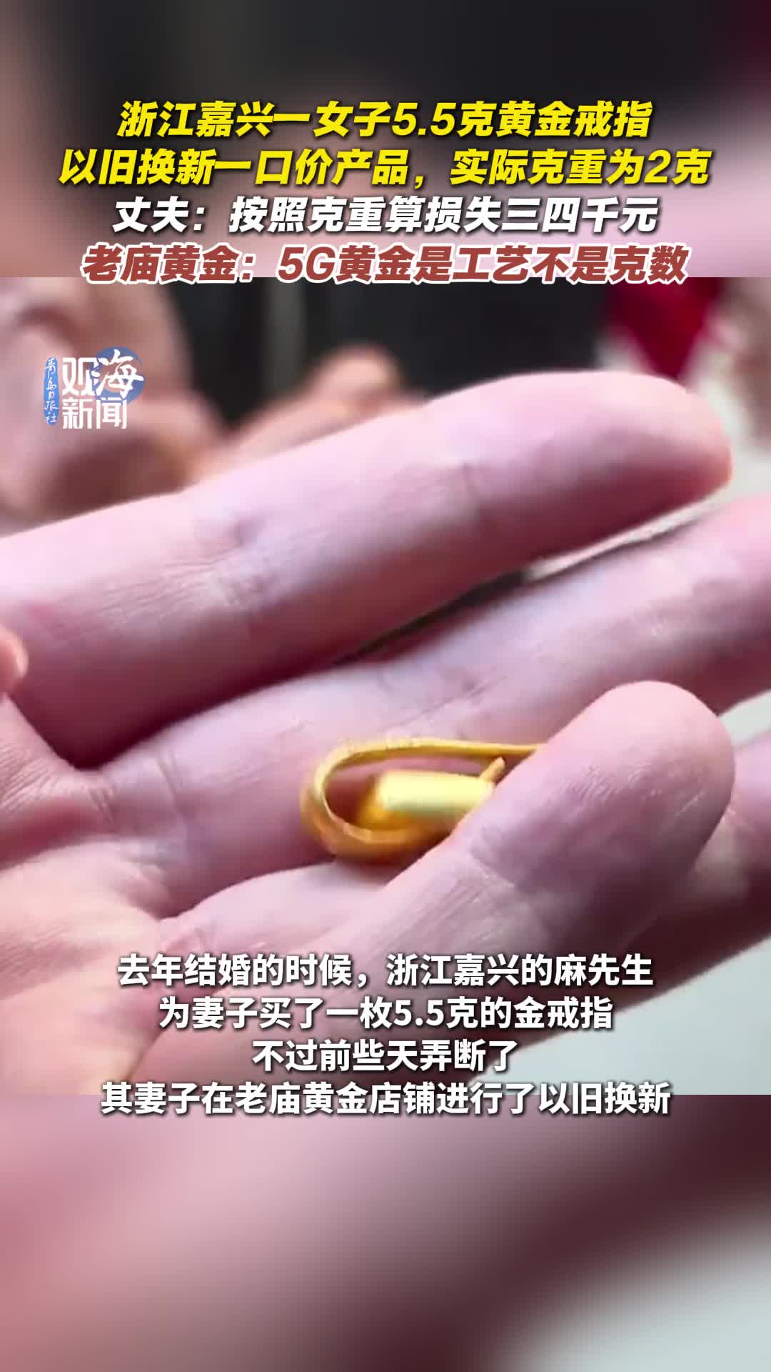 浙江嘉兴一女子5.5克黄金戒指以旧换新一口价产品,实际克重为2克