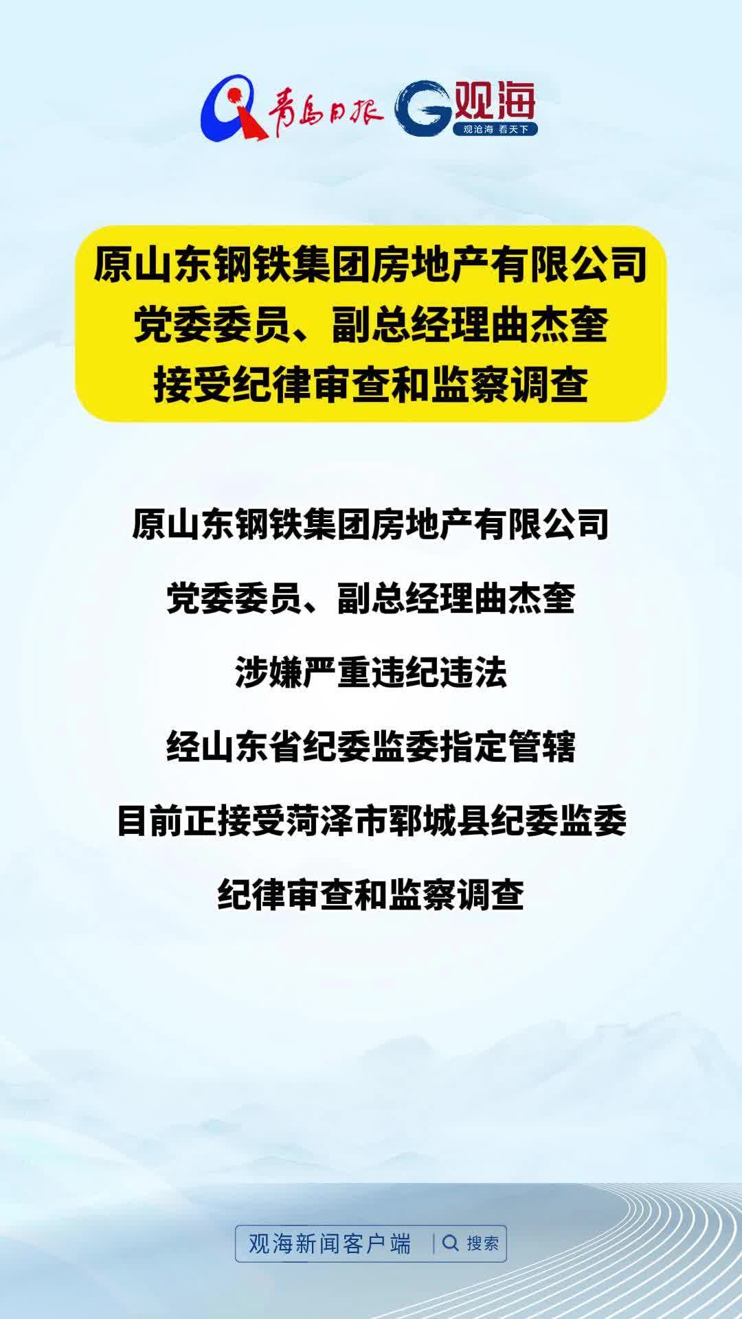 原山东钢铁集团房地产有限公司党委委员、副总经理曲杰奎接受纪律审查和监察调查
