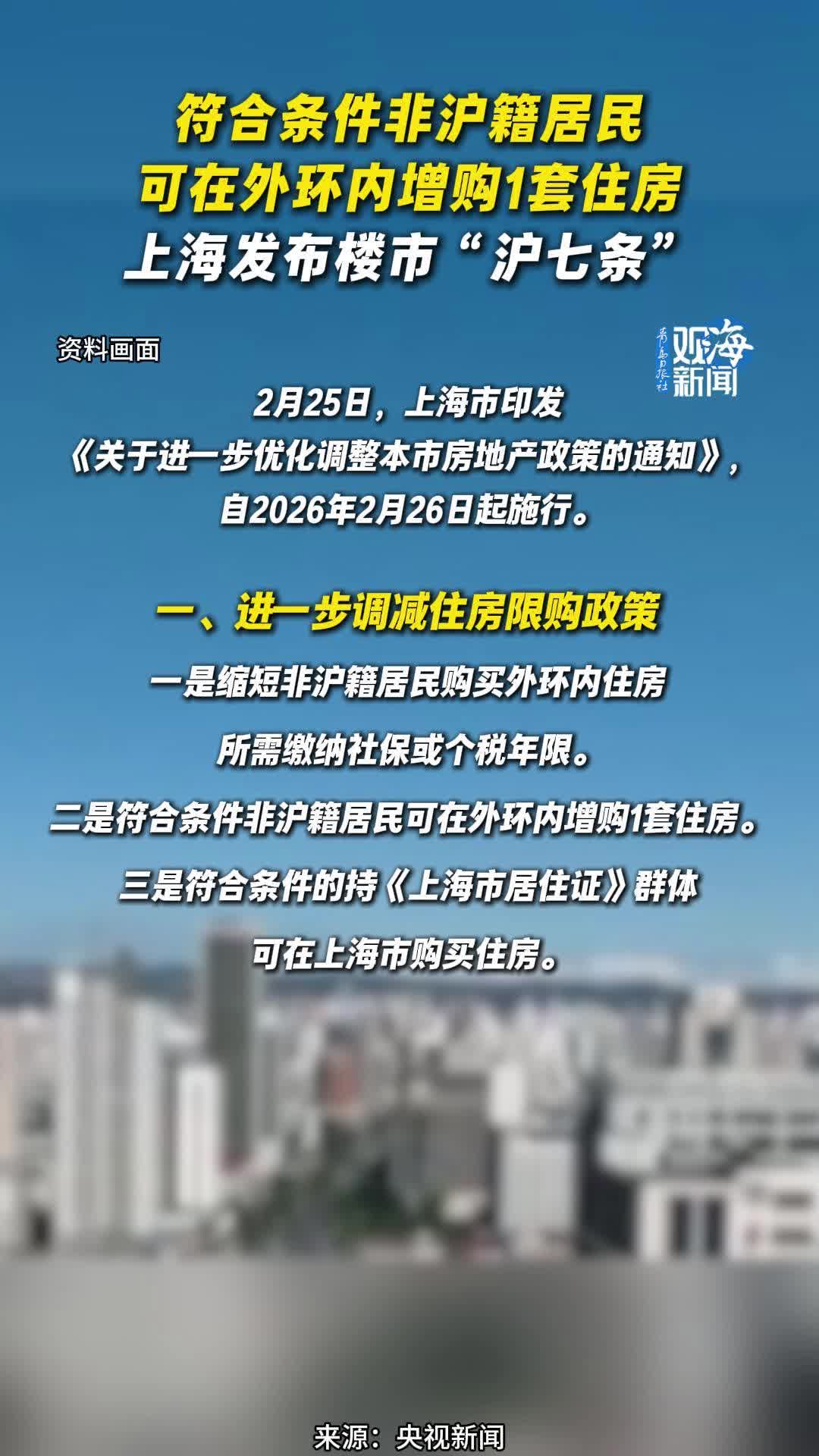 符合条件非沪籍居民可在外环内增购1套住房,上海发布楼市“沪七条”
