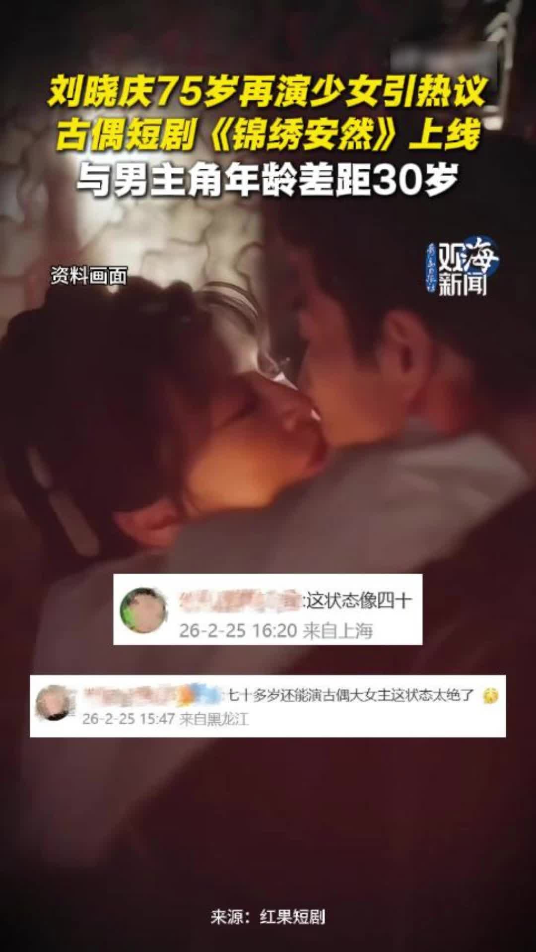 刘晓庆75岁再演少女引热议,古偶短剧《锦绣安然》上线,与男主角年龄差距30岁