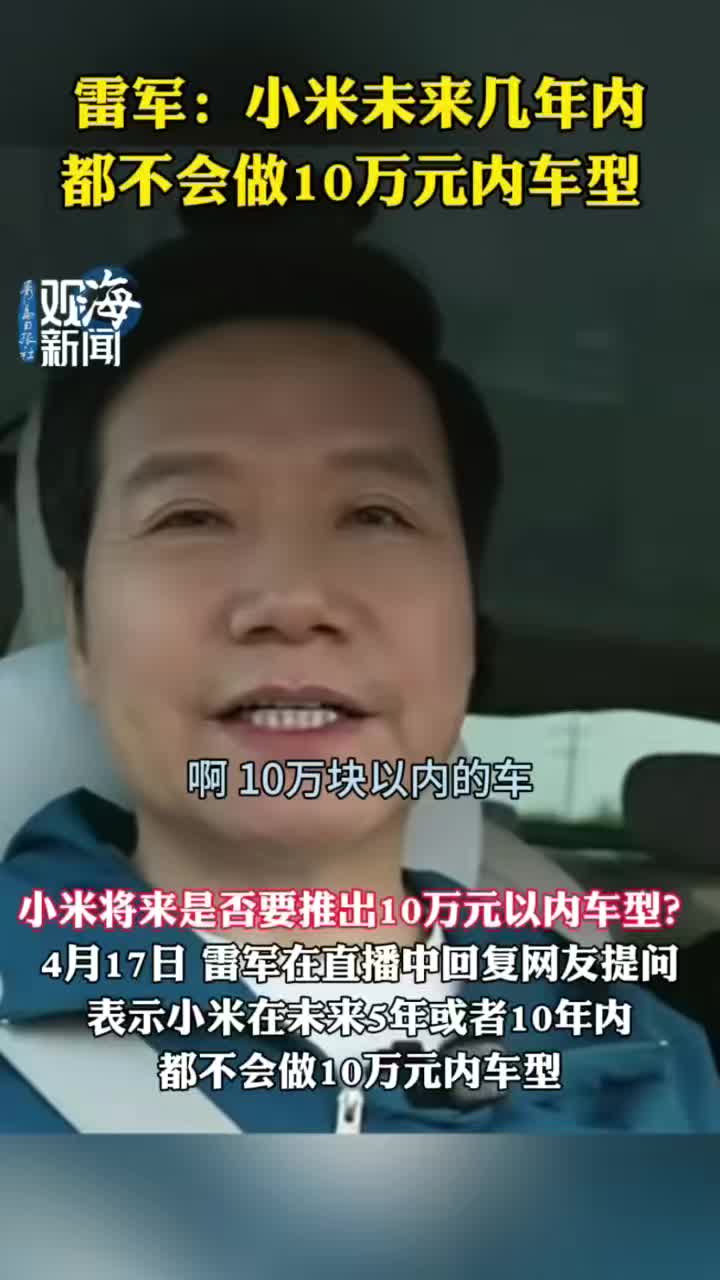 雷军:小米未来几年内都不会做10万元内车型