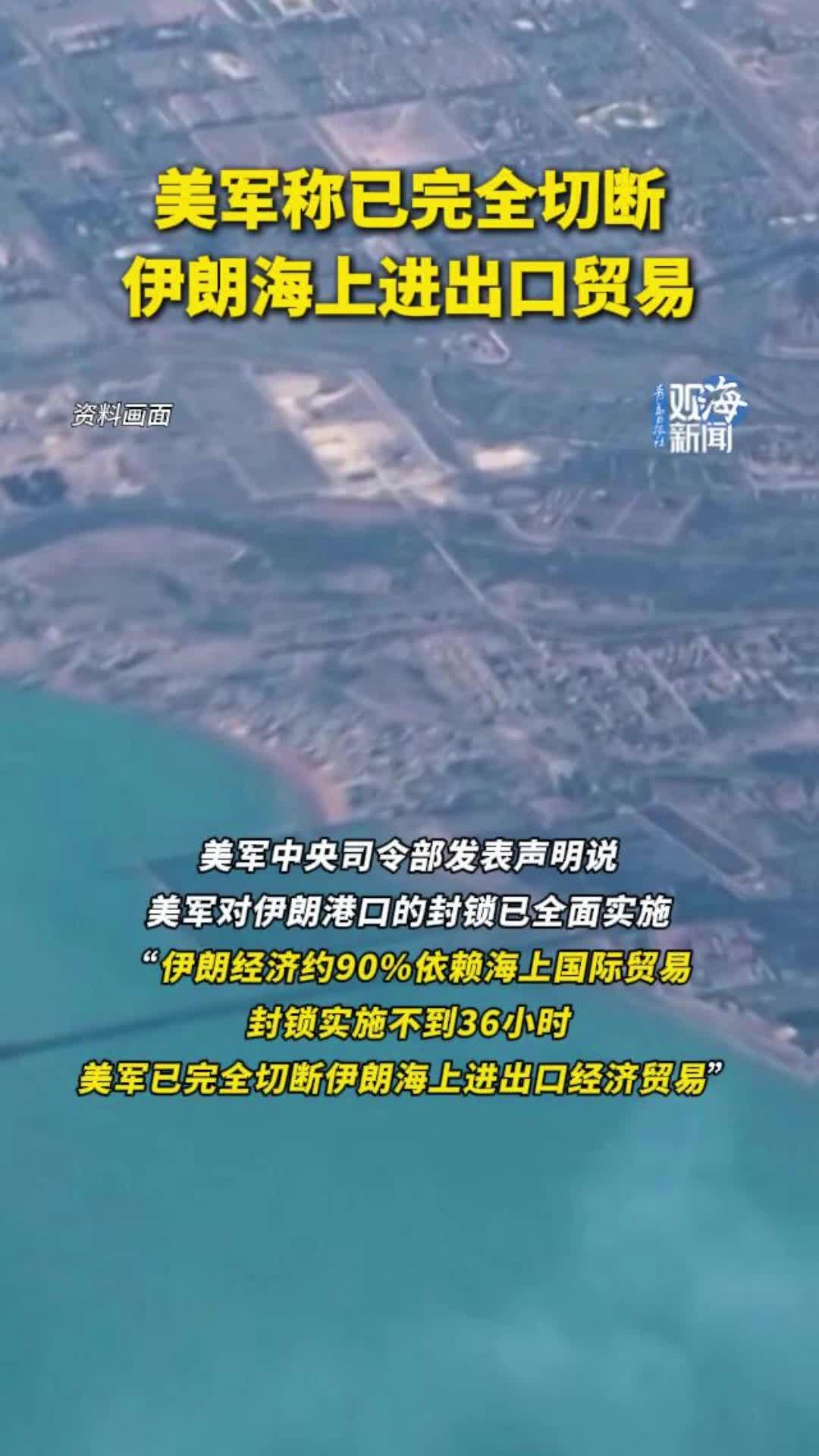 美军称已完全切断伊朗海上进出口贸易