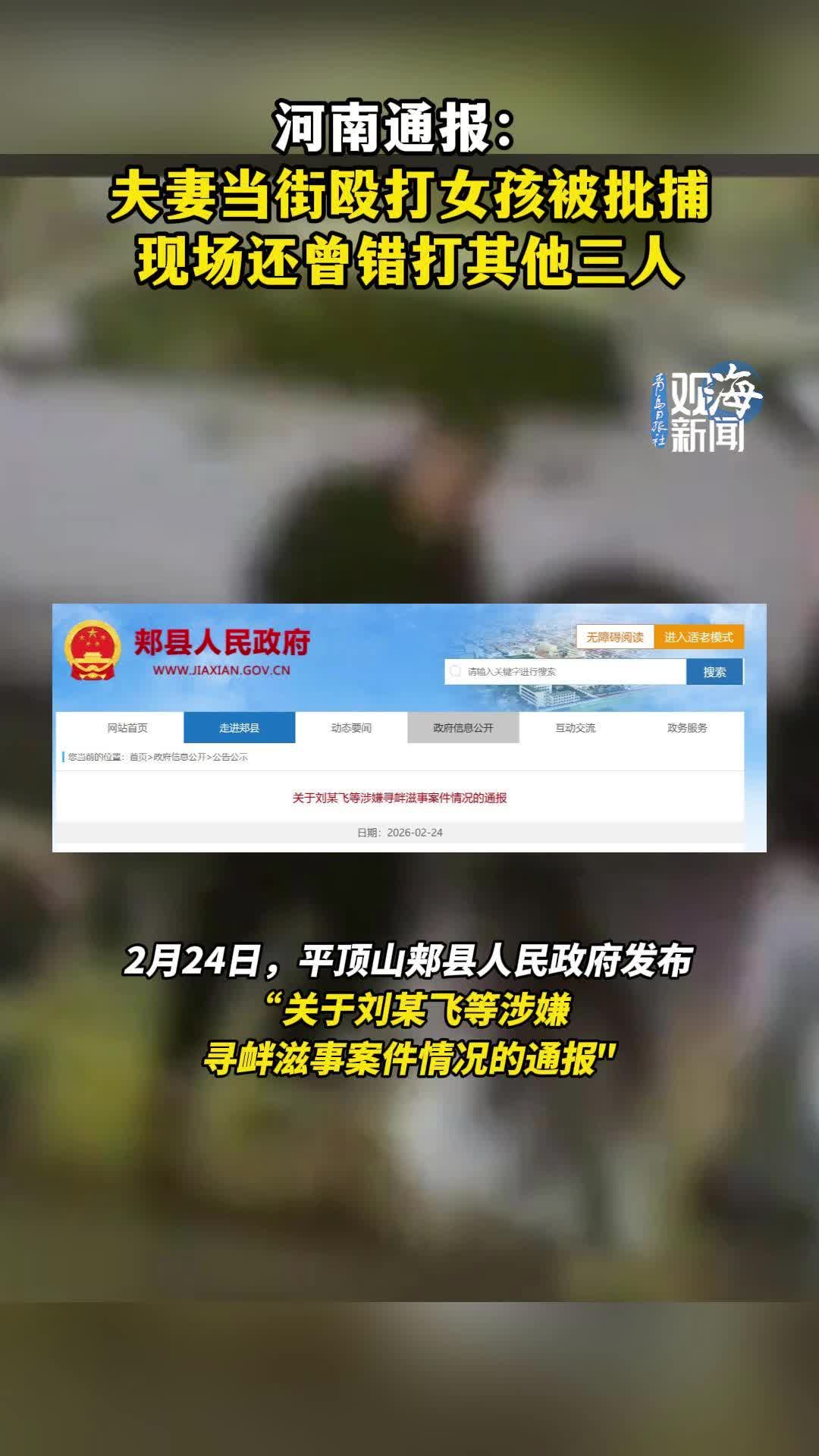 河南通报:夫妻当街殴打女孩被批捕,现场还曾错打其他三人
