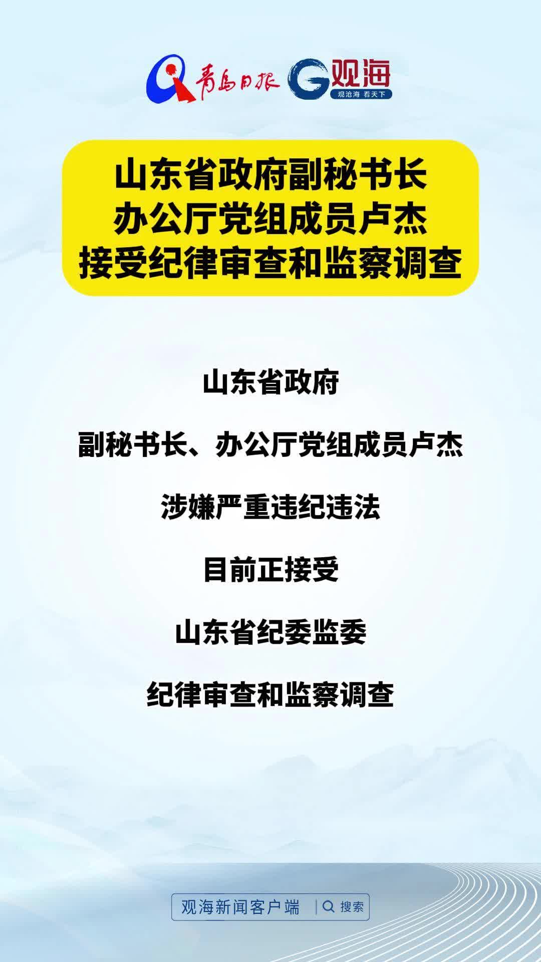 山东省政府副秘书长、办公厅党组成员卢杰接受纪律审查和监察调查