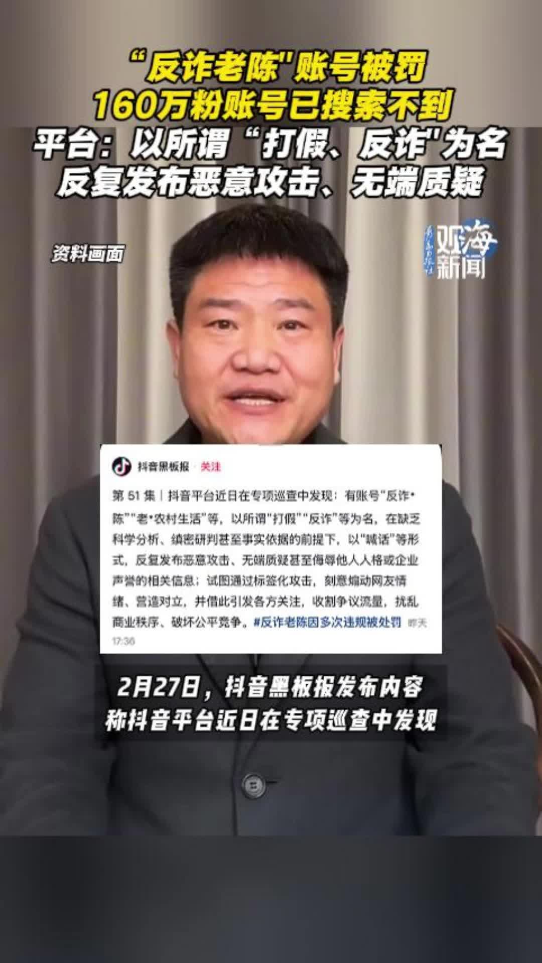 “反诈老陈"账号被罚,160万粉账号已搜索不到