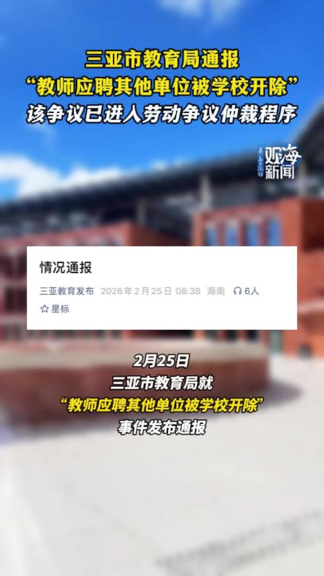 三亚市教育局通报“教师应聘其他单位被学校开除”