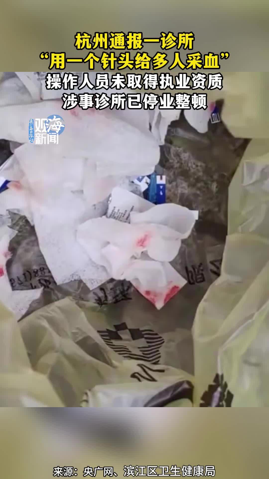 杭州通报一诊所“用一个针头给多人采血”,操作人员未取得执业资质,涉事诊所已停业整顿