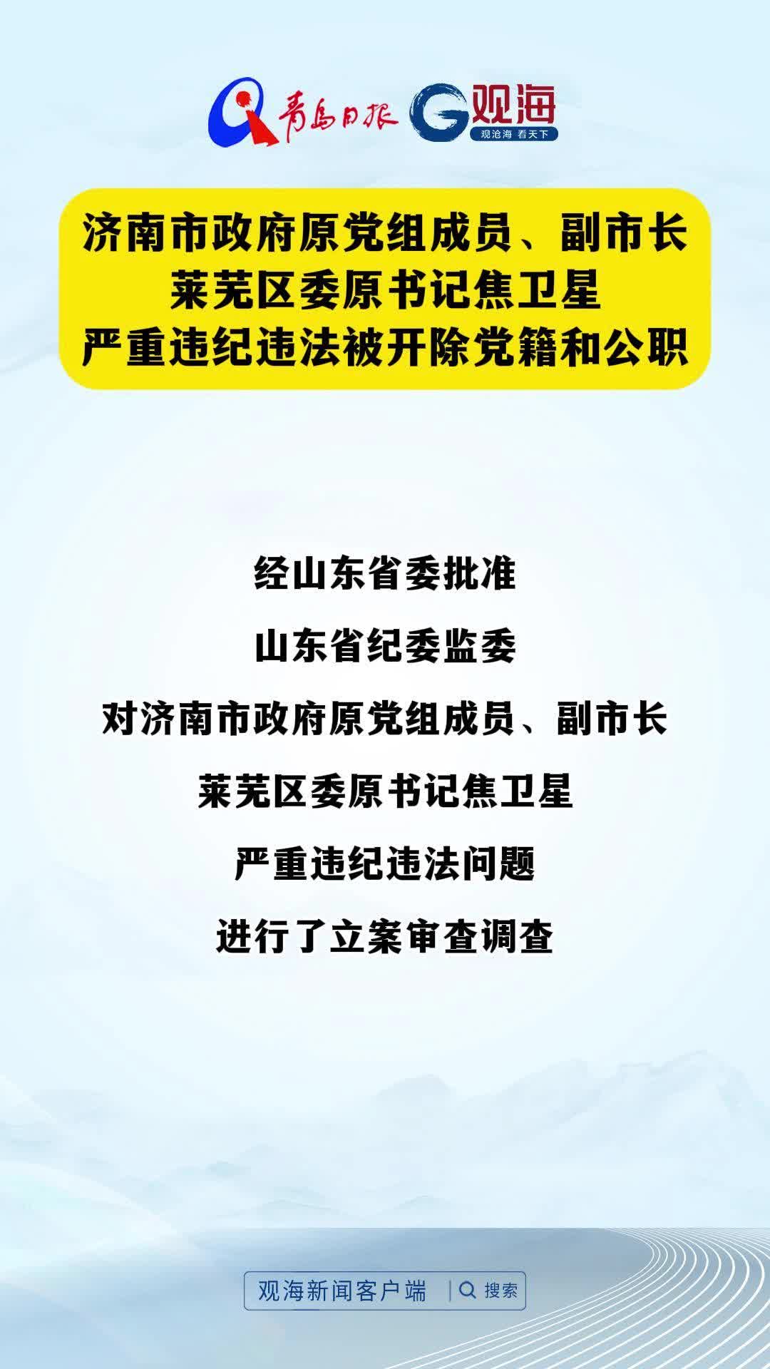 济南市政府原党组成员、副市长,莱芜区委原书记焦卫星严重违纪违法被开除党籍和公职
