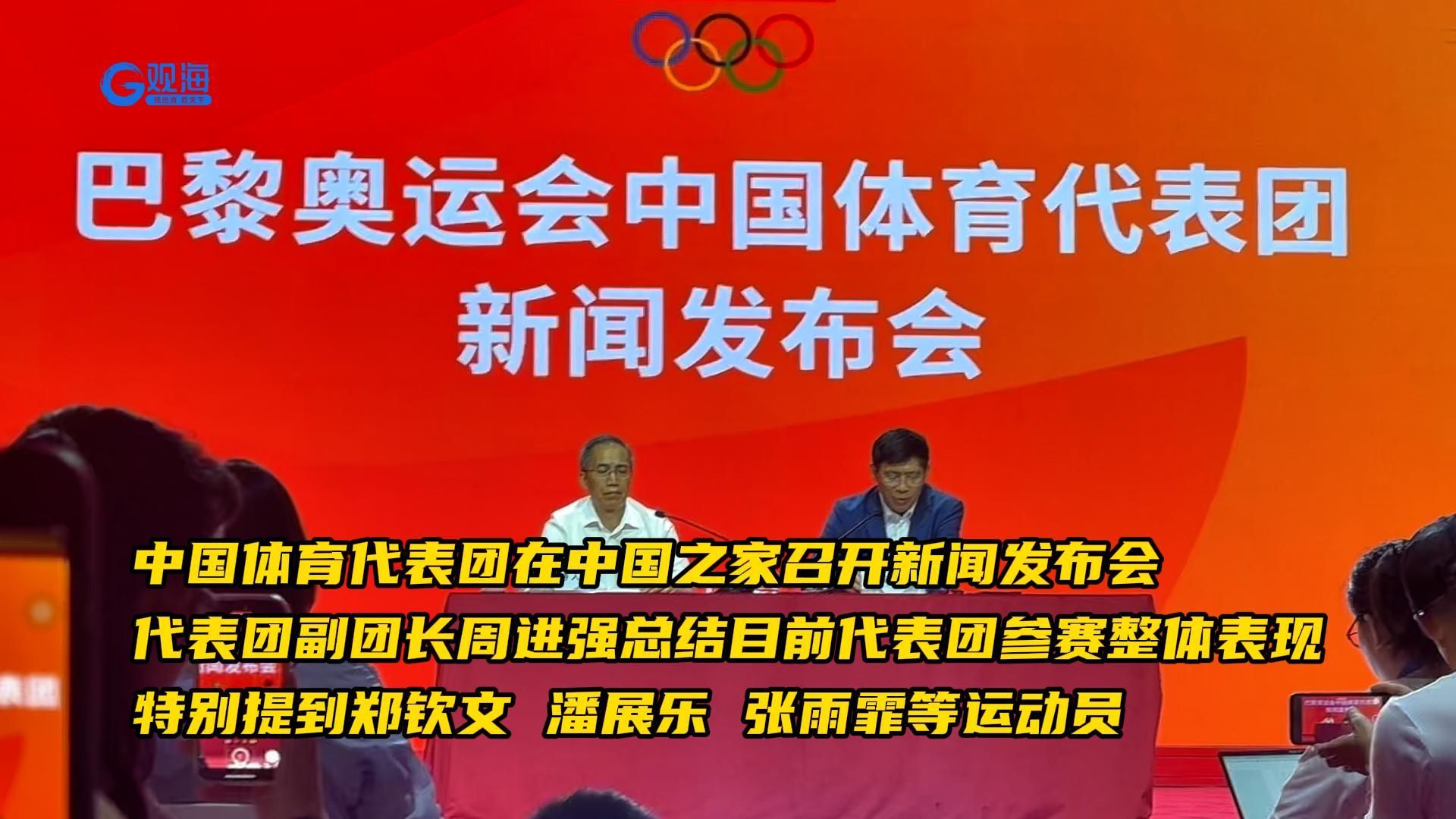 中国体育代表团副团长周进强总结目前代表团参赛整体表现,特别提到郑钦文潘展乐张雨霏等运动员