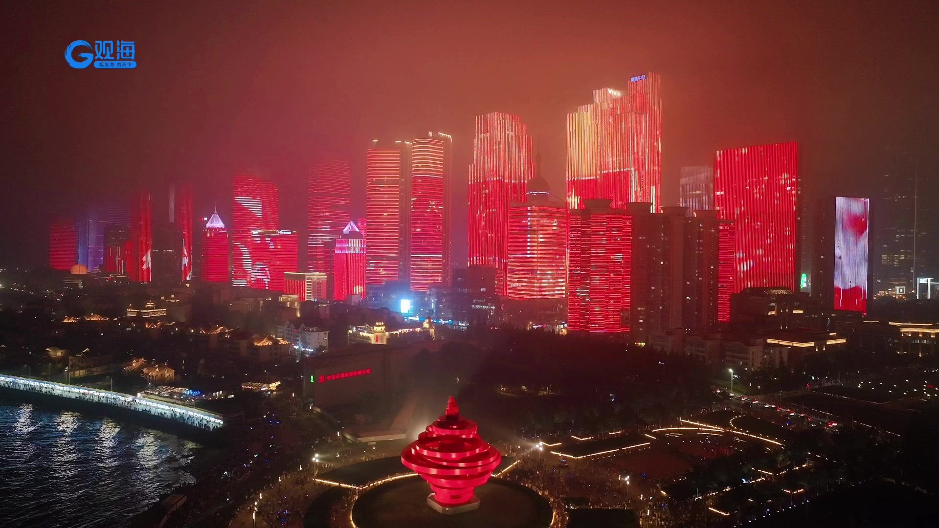 航拍 | 庆祝中国人民解放军建军97周年主题灯光秀闪耀浮山湾