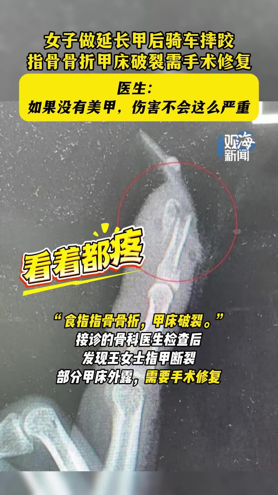 女子做延长甲后骑车摔跤,指骨骨折甲床破裂需手术修复!医生:如果没有美甲,伤害不会这么严重