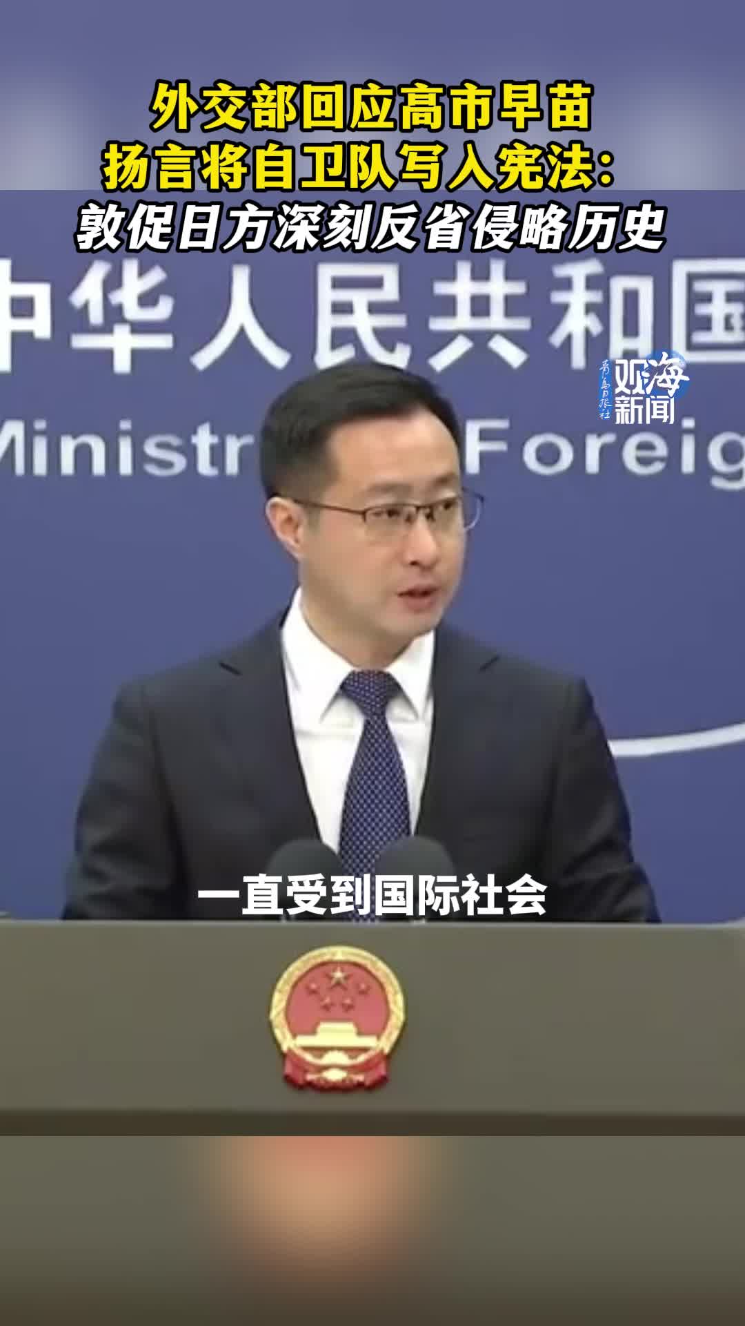 外交部回应高市早苗扬言将自卫队写入宪法:敦促日方深刻反省侵略历史