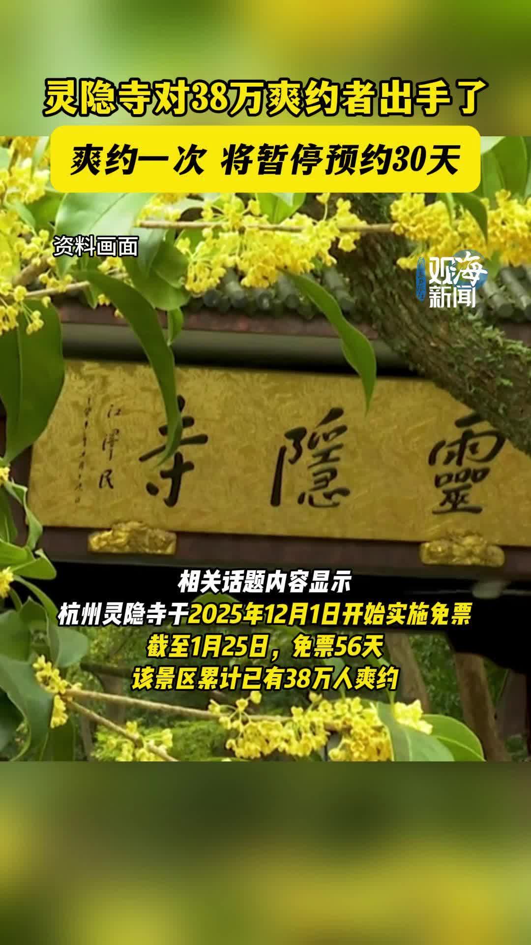 灵隐寺免票56天,38万人集体爽约!灵隐寺发布通告:爽约一次,将暂停预约30天