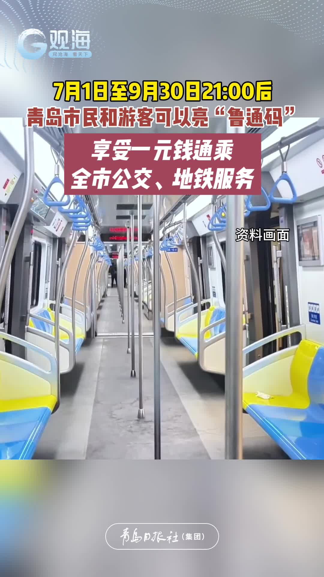 7月1日至9月30日21:00后,青岛市民和游客可以亮“鲁通码”,享受一元钱通乘全市公交、地铁服务