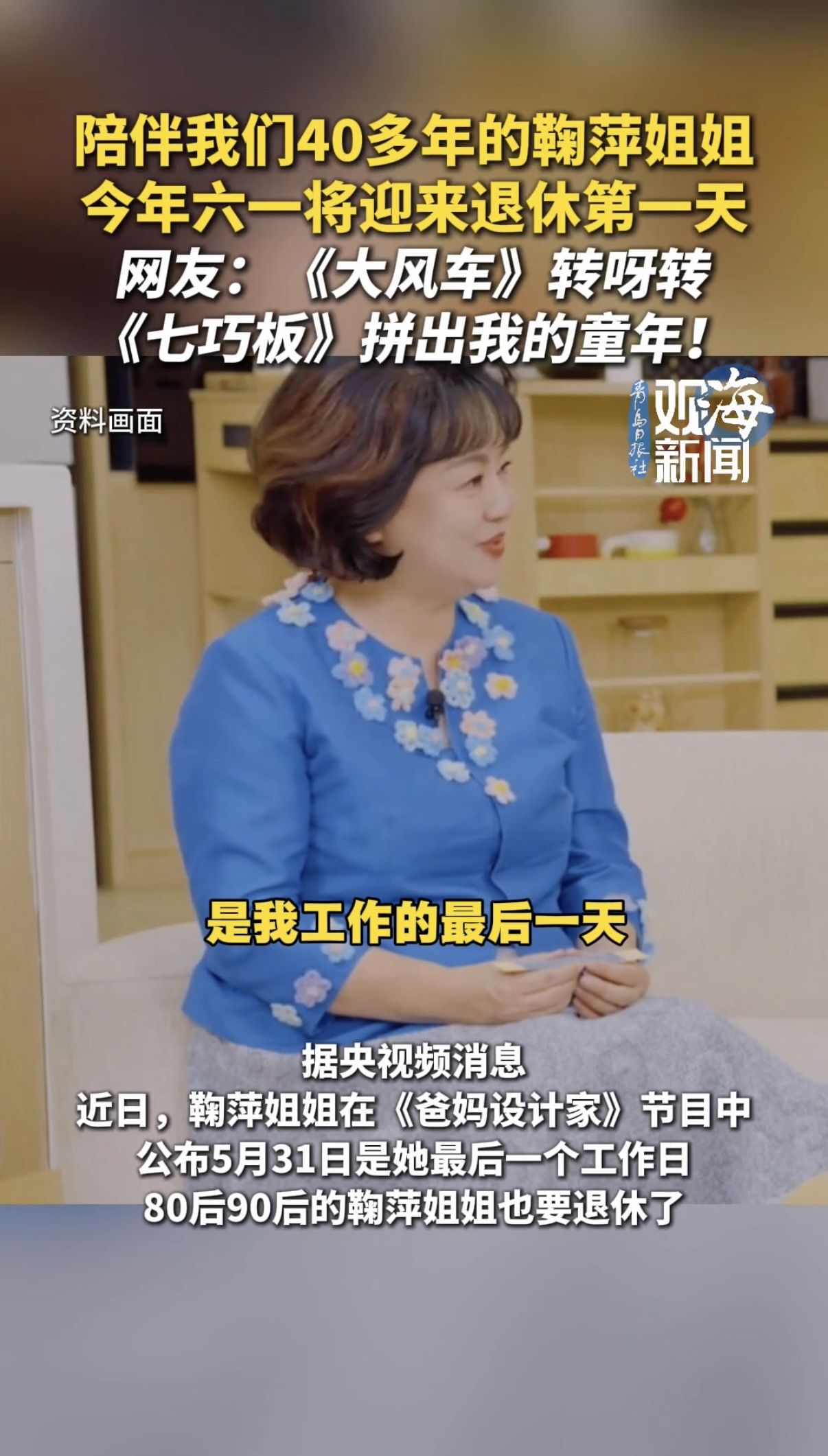 陪伴我们40多年的鞠萍姐姐,今年六一将迎来退休第一天