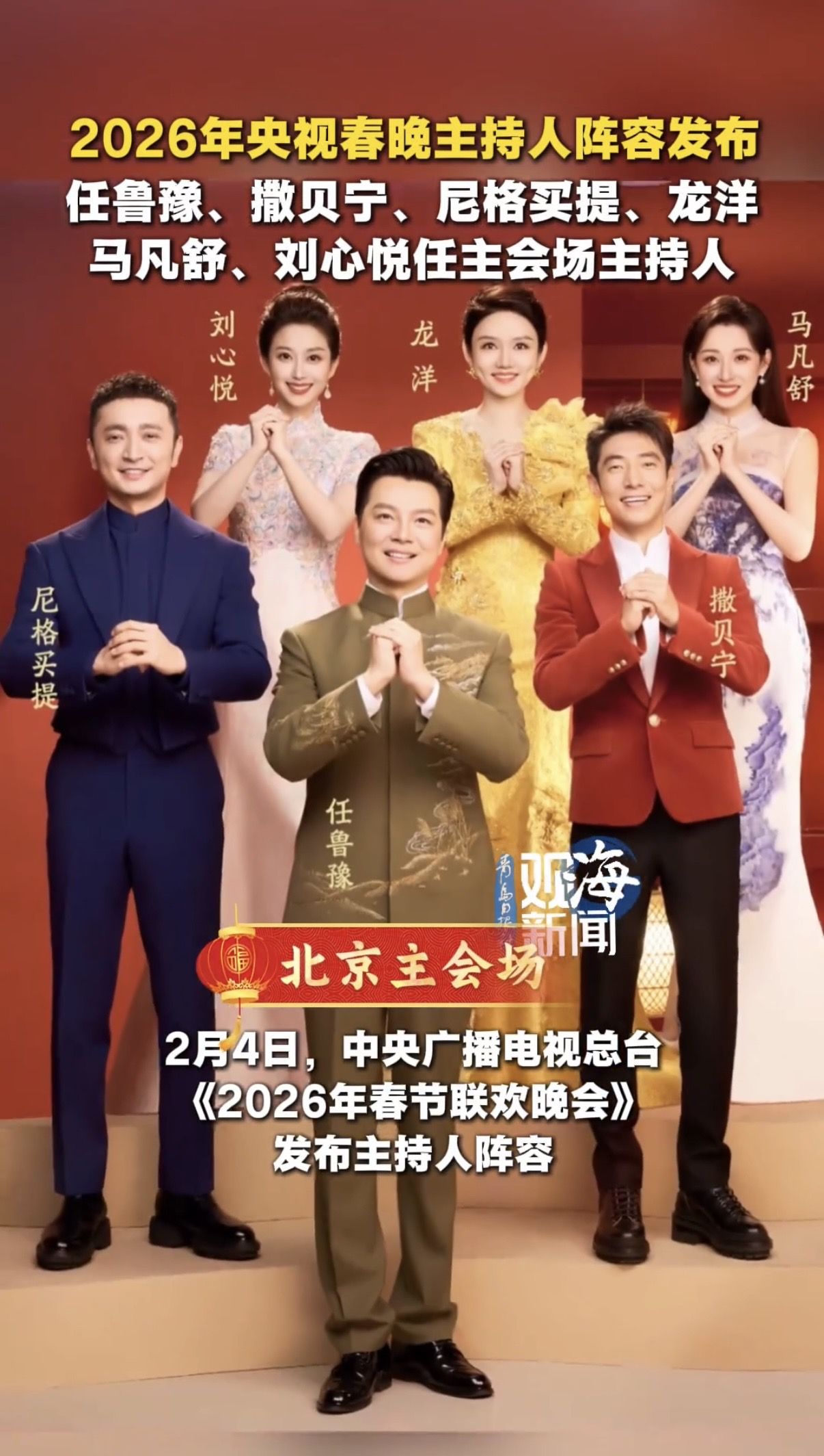 2026年央视春晚主持人阵容发布
