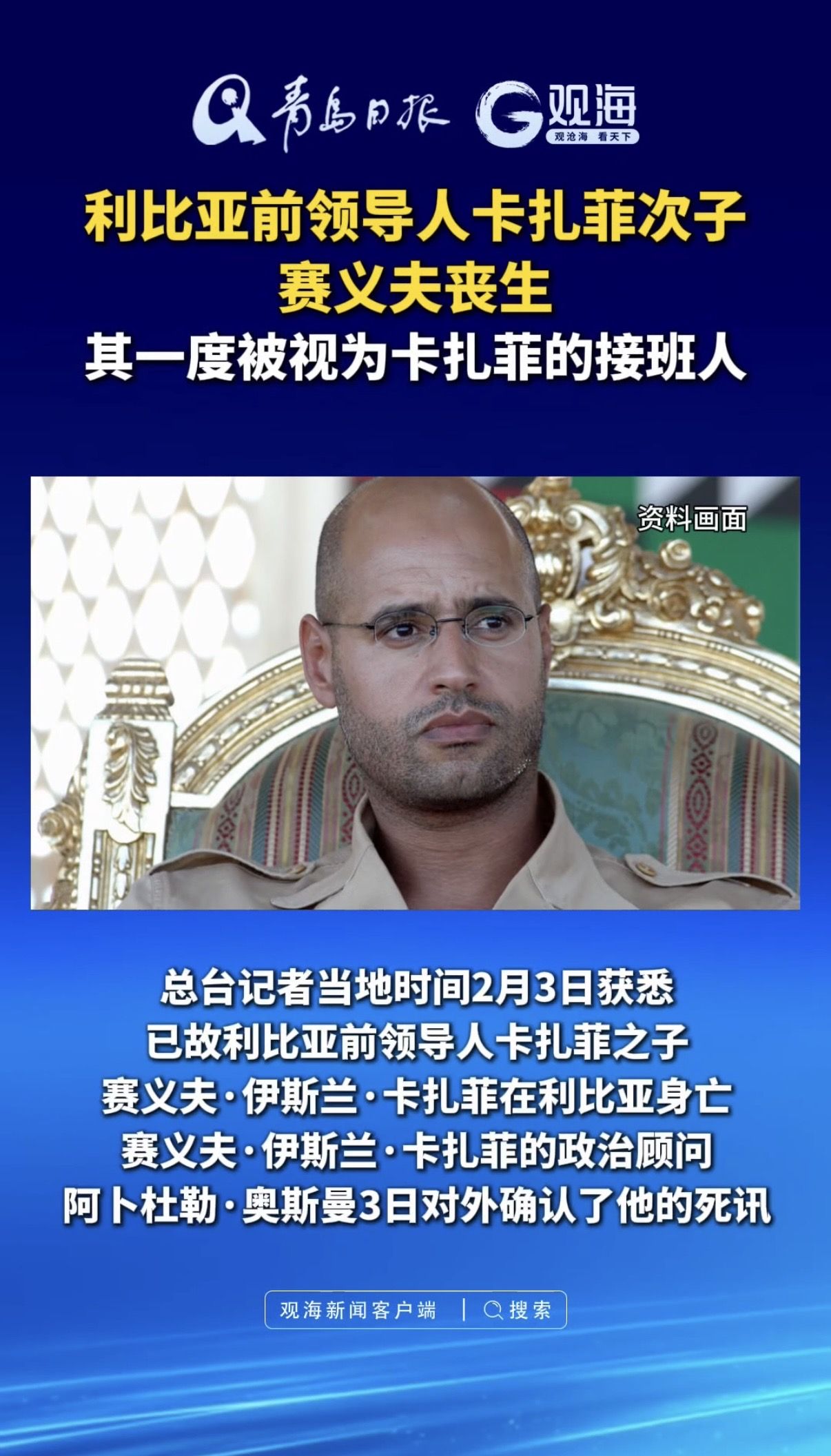 利比亚前领导人卡扎菲次子赛义夫丧生