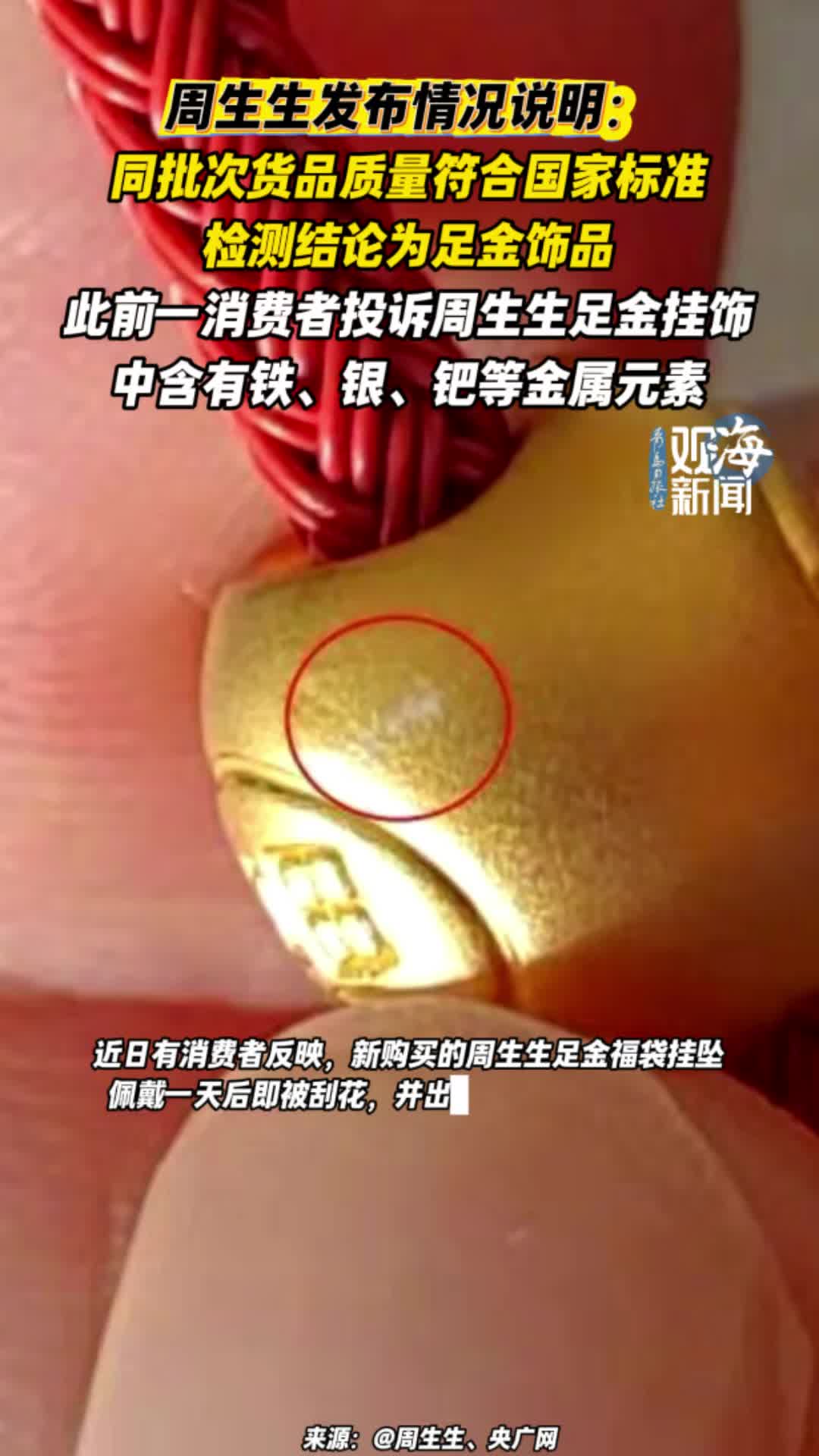 周生生发布情况说明:同批次货品质量符合国家标准