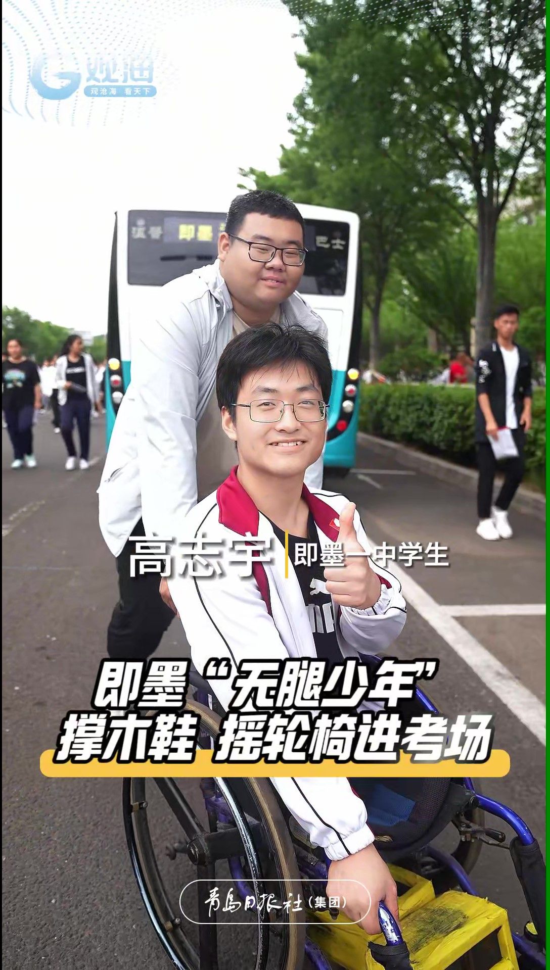 青岛“无腿少年”高志宇撑木鞋、摇轮椅参加高考!