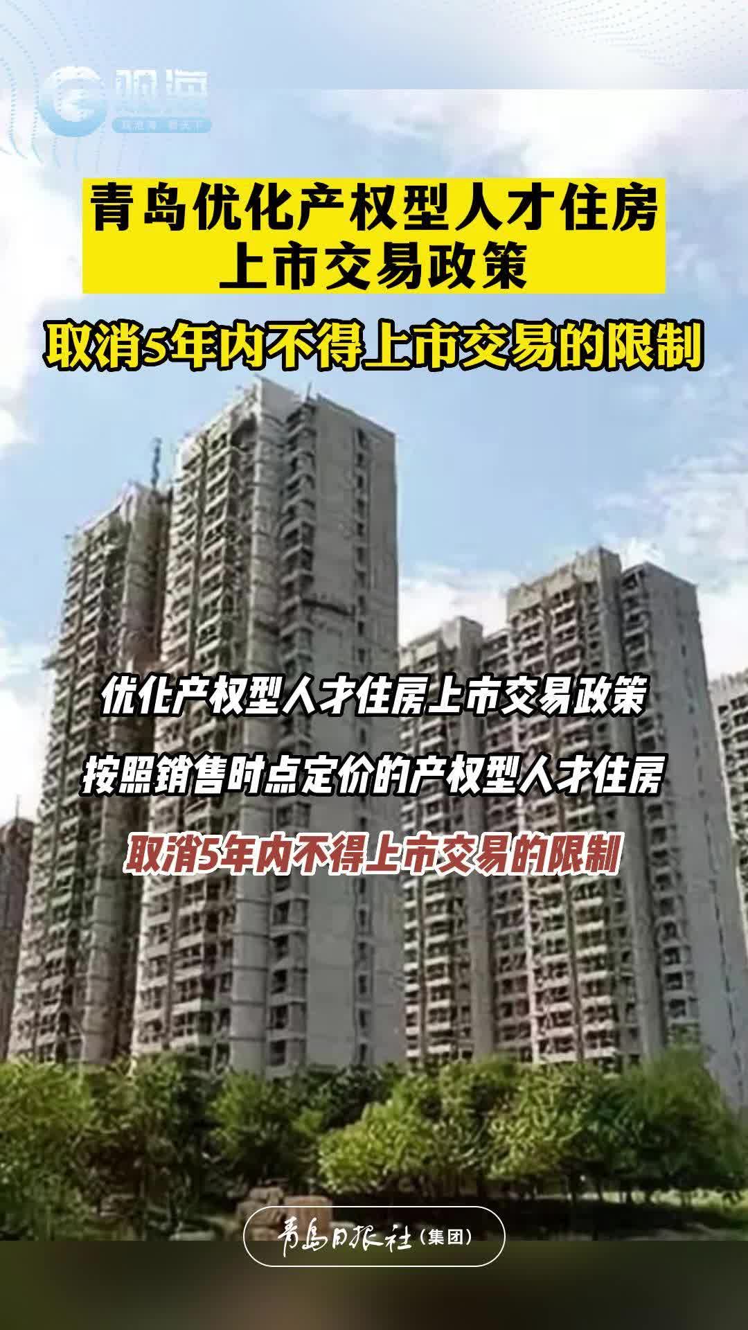 青岛优化产权型人才住房上市交易政策:取消5年内不得上市交易的限制