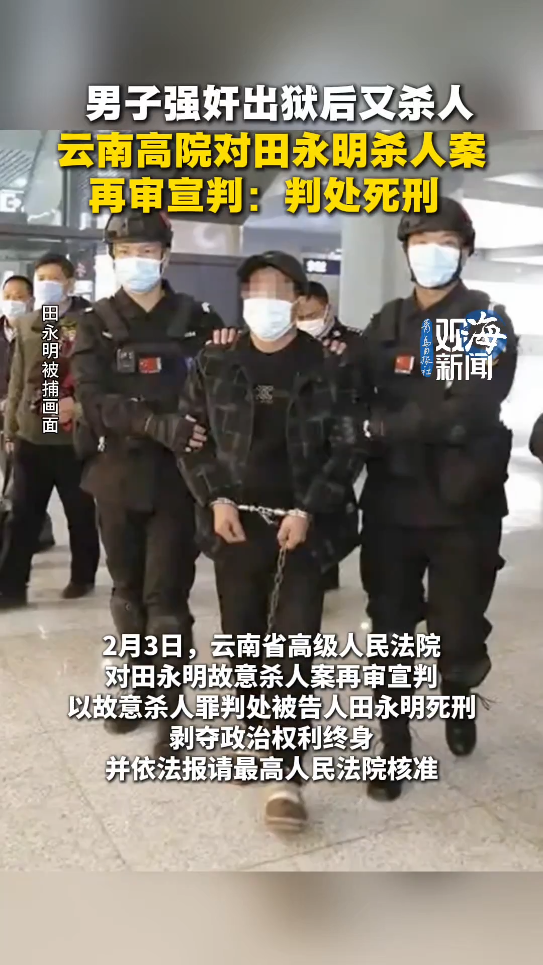 男子强奸出狱后又杀人,云南高院对田永明杀人案再审宣判:判处死刑