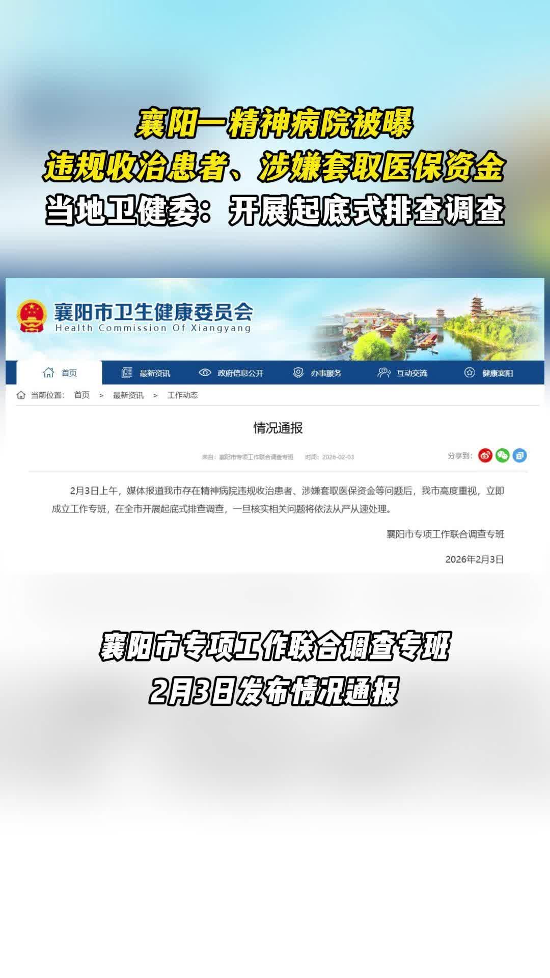 襄阳一精神病院被曝:违规收治患者、涉嫌套取医保资金,当地卫健委:开展起底式排查调查