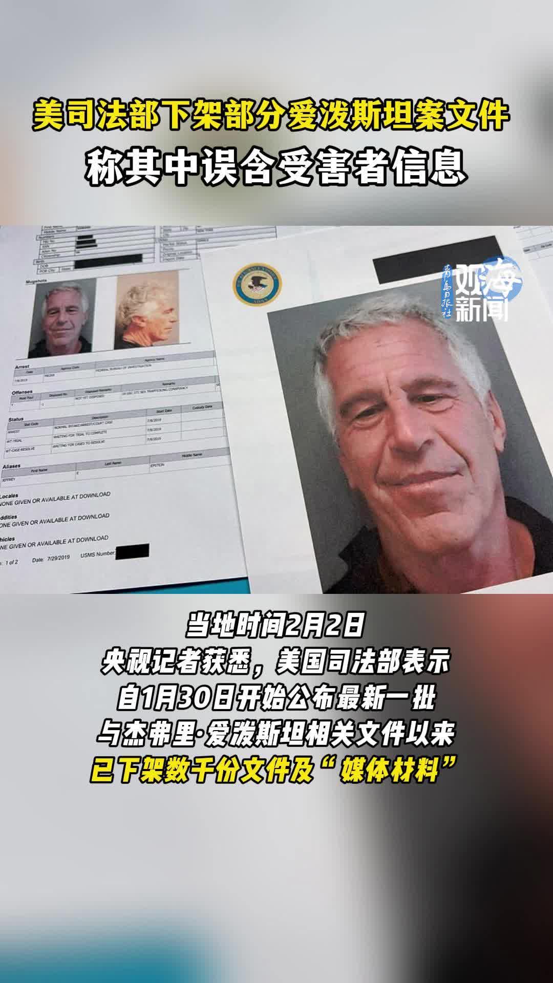 美司法部下架部分爱泼斯坦案文件,称其中误含受害者信息