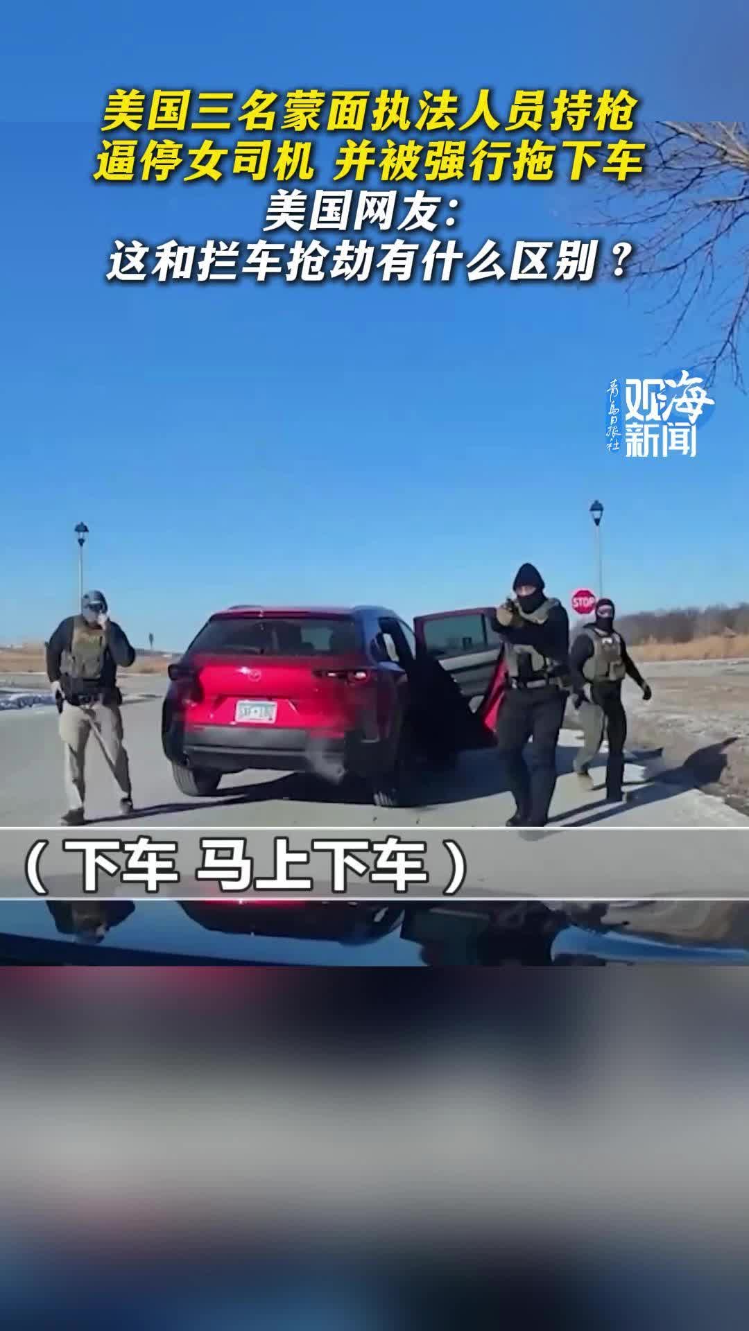 美国三名蒙面执法人员持枪逼停女司机,并被强行拖下车, 美国网友:这和拦车抢劫有什么区别?