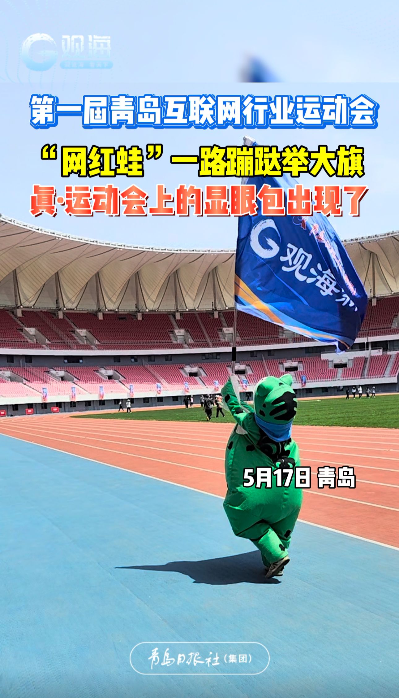 第一届青岛互联网行业运动会,“网红蛙”一路蹦跶举大旗,真·运动会上的显眼包出现了!