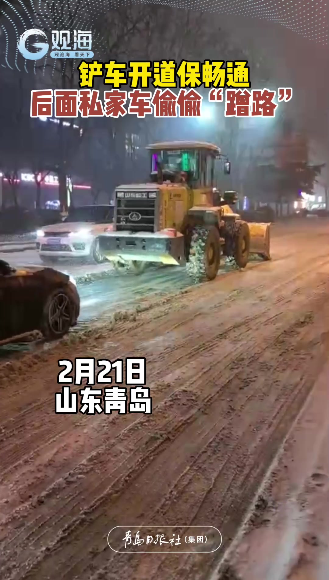铲车开道保畅通,后面私家车偷偷“蹭路”
