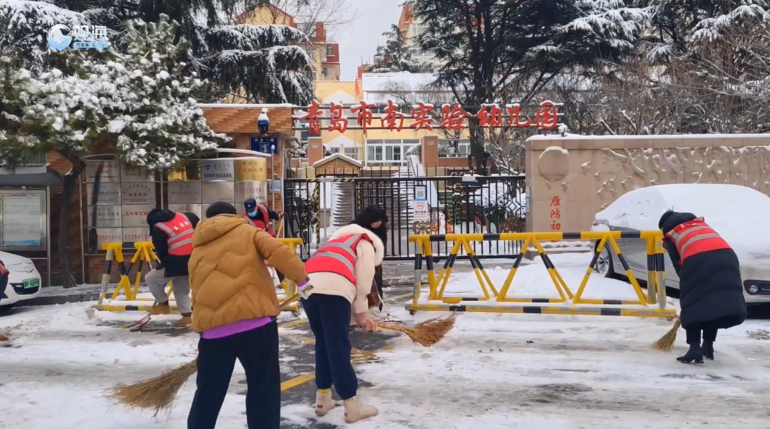 幼儿园教师队伍扫冰除雪,保障居民儿童出行安全