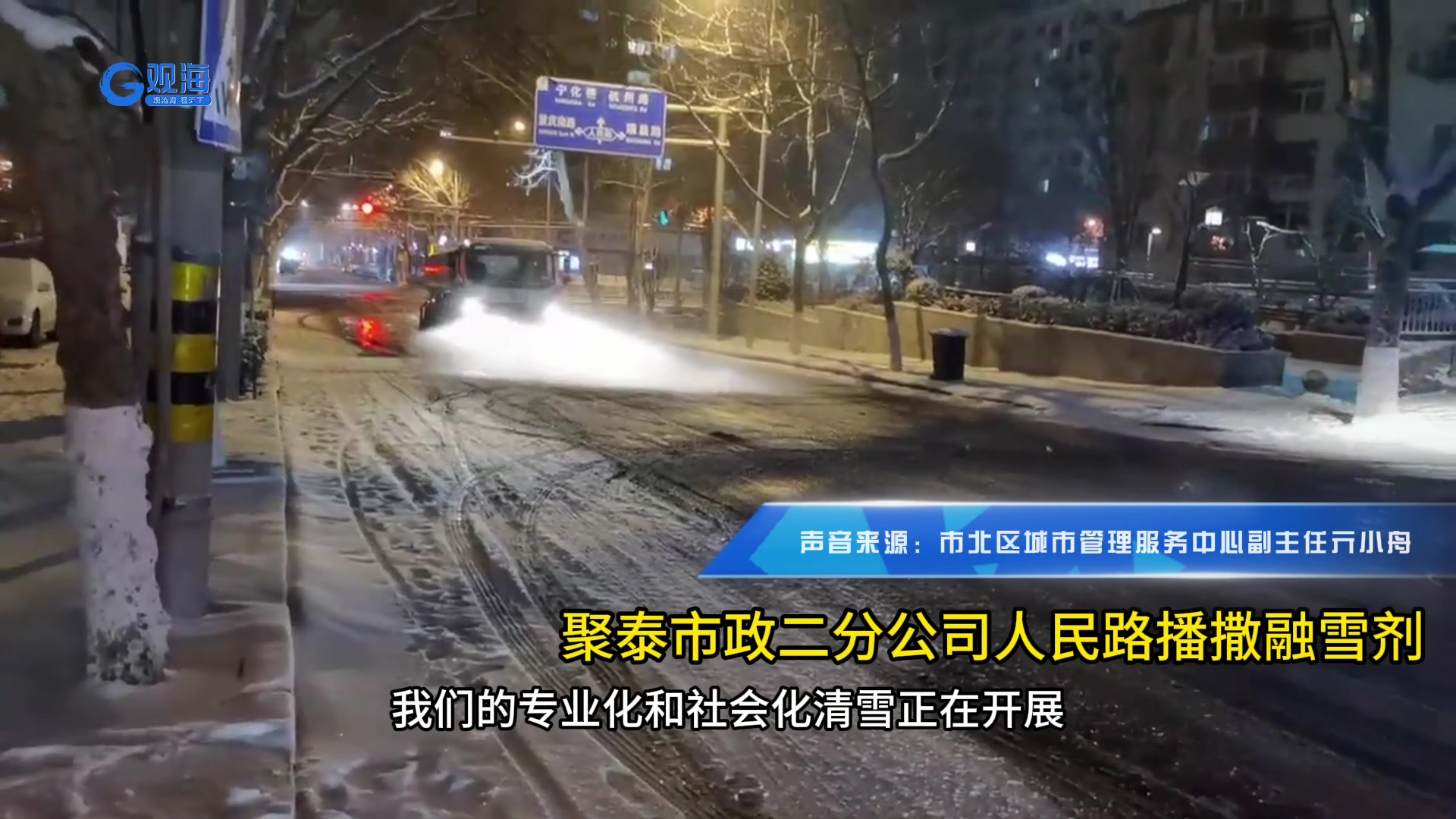 青岛环卫撒播融雪剂除冰融雪,全力保障市民出行和道路畅通