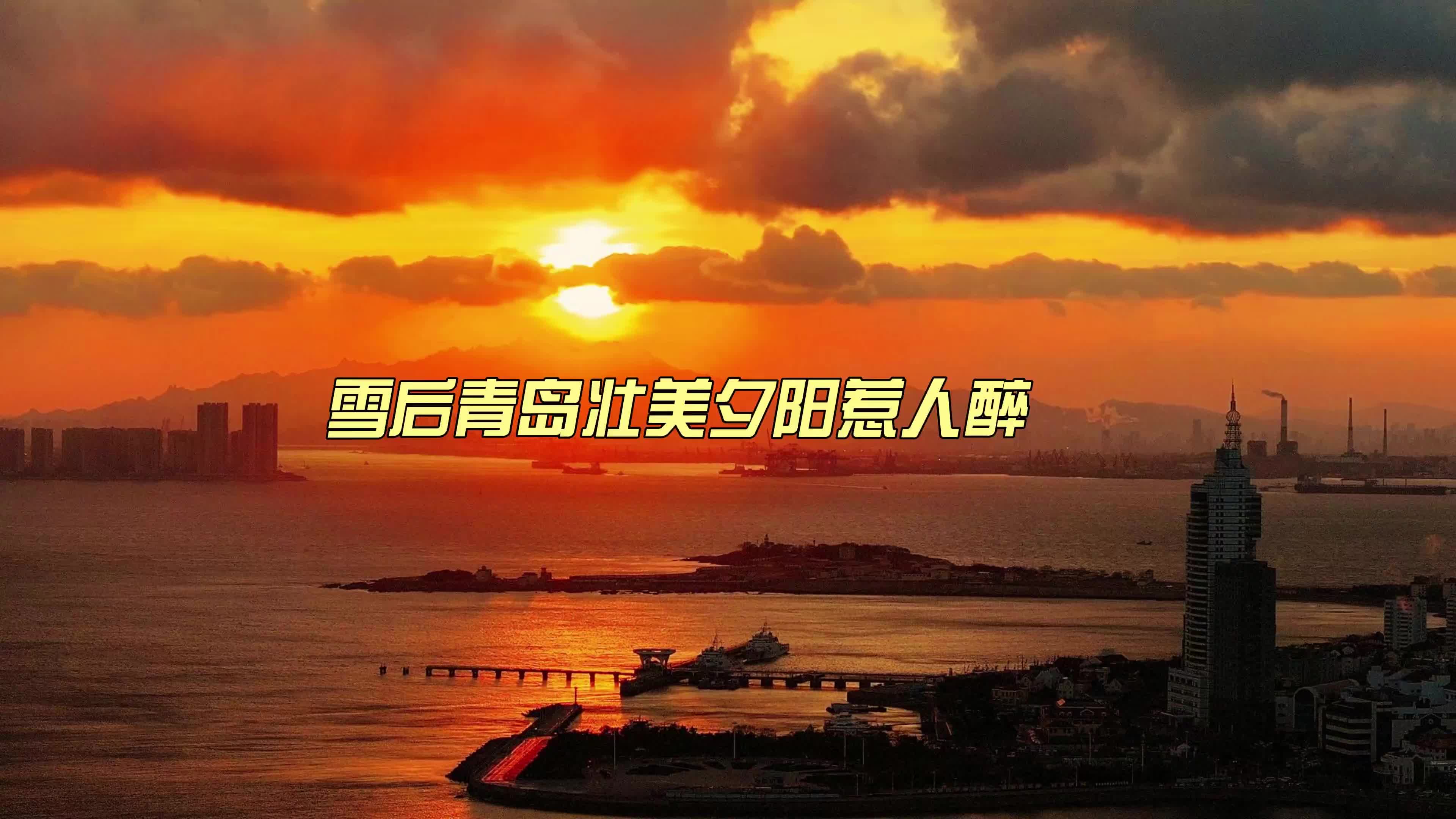 雪后青岛迎最美落日