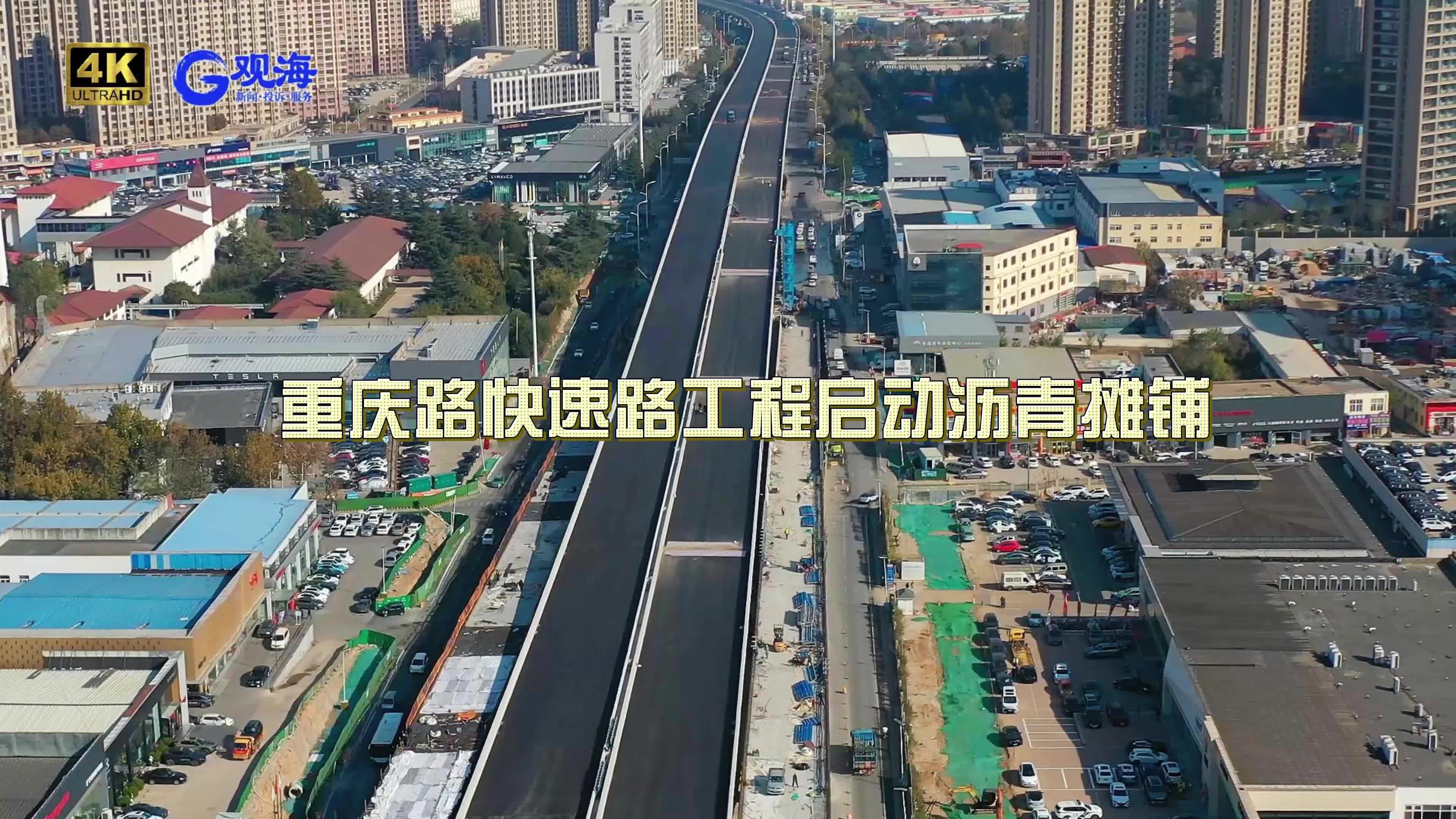 4K版航拍直击丨重庆路快速路工程启动沥青摊铺