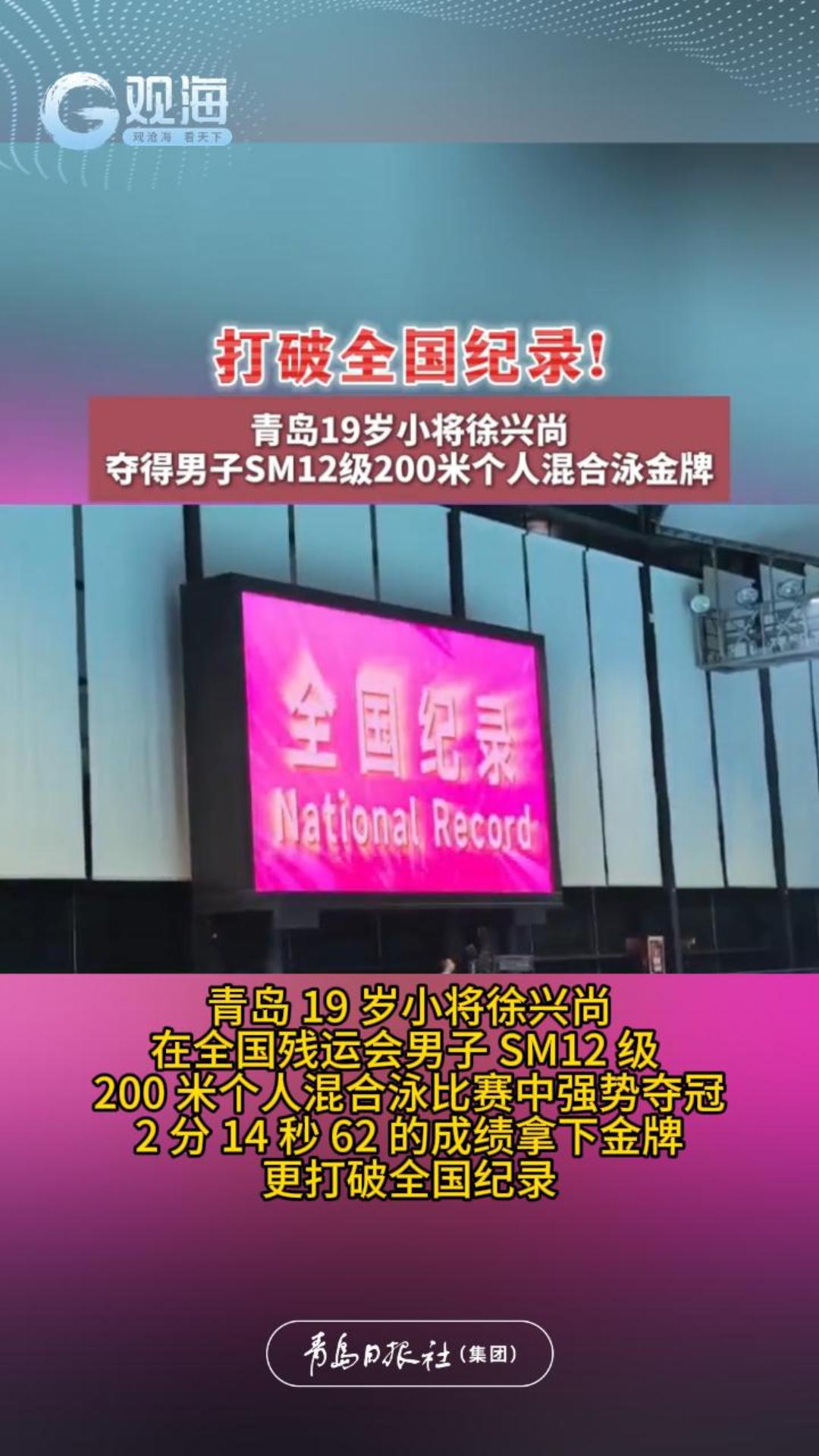 青岛19岁小将徐兴尚夺得全国残特奥会男子SM12级200米个人混合泳金牌,打破全国纪录!