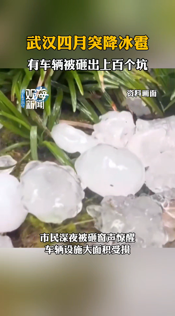 武汉四月突降冰雹,有车辆被砸出上百个坑
