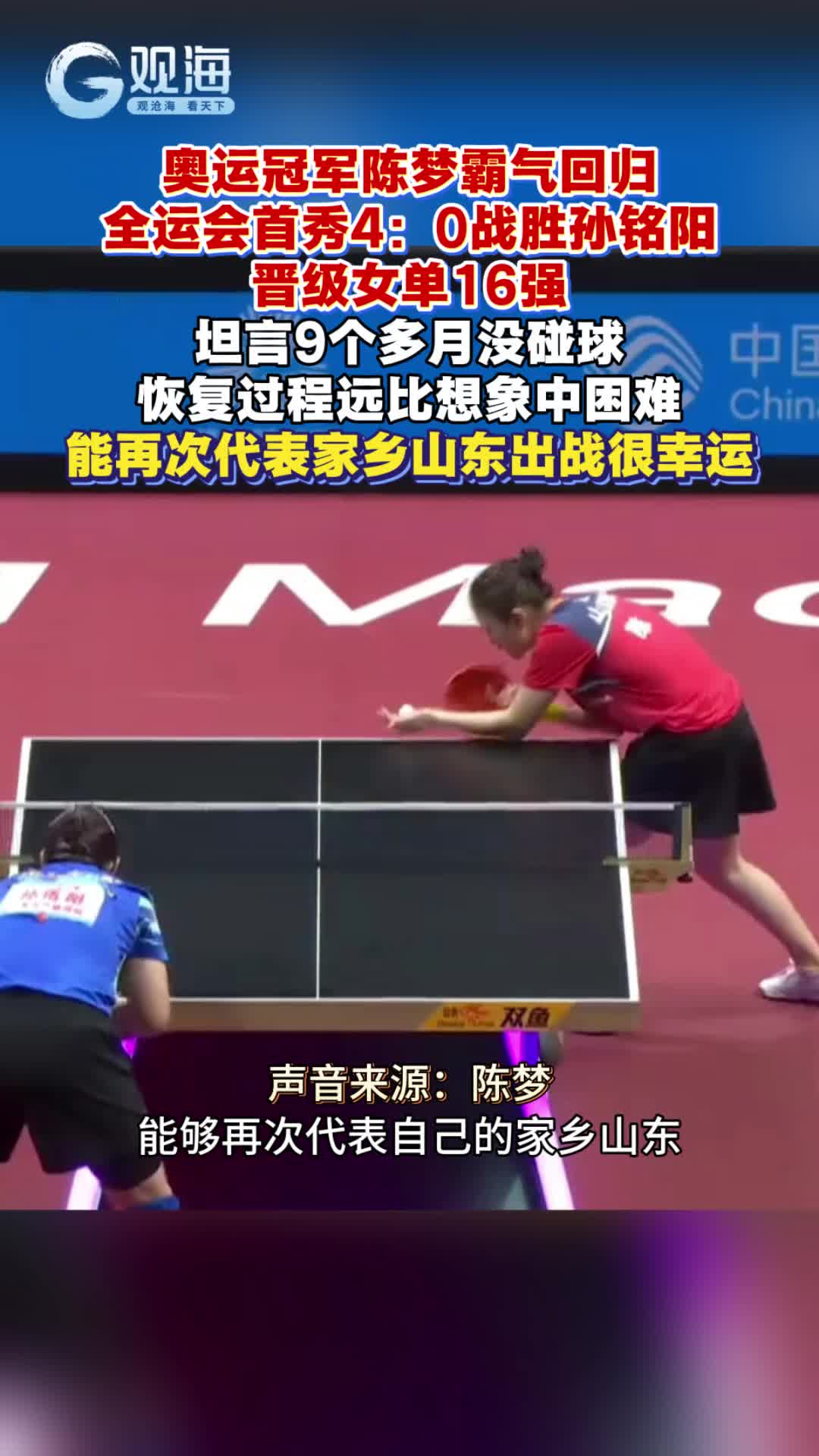 奥运冠军陈梦霸气回归!全运会首秀4:0战胜孙铭阳,晋级女单16强