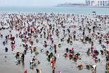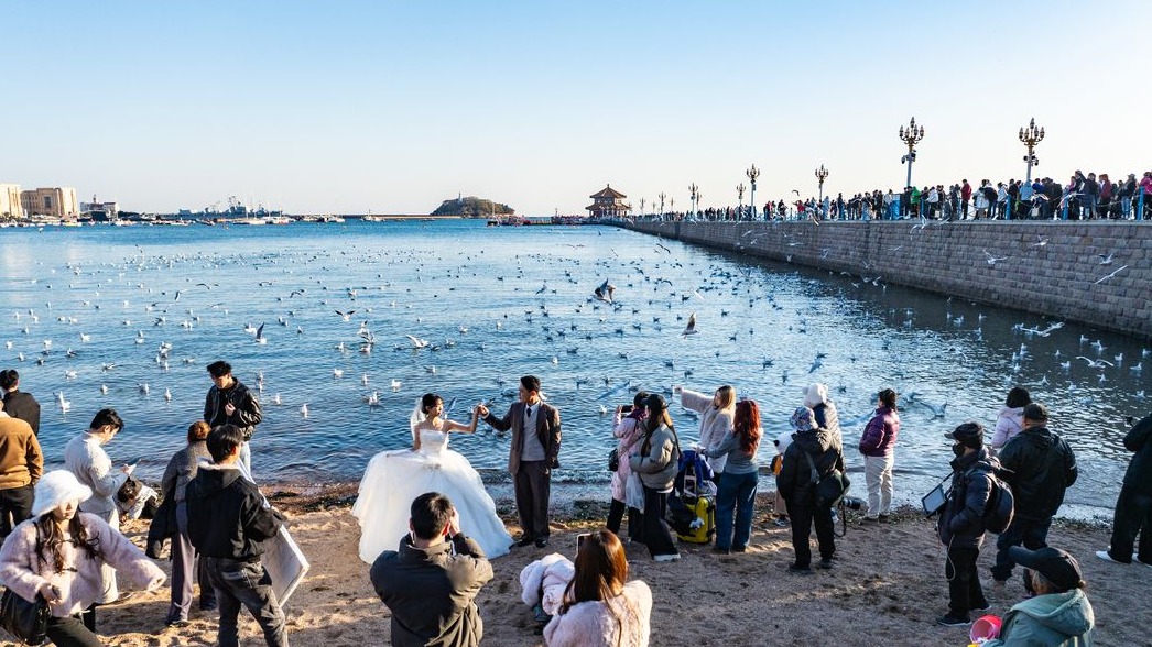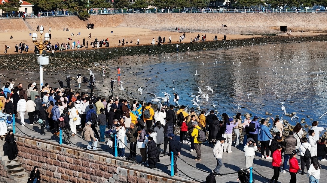 蓝天白云间“名场面”:海鸥翩跹,人鸥同乐